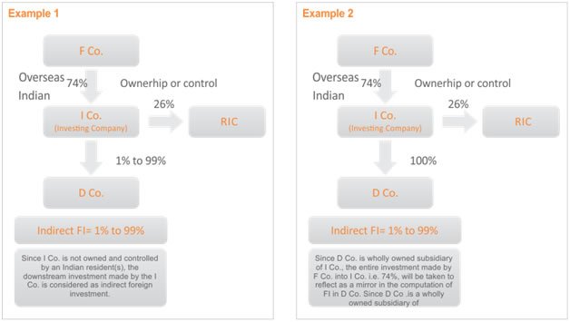 - If any foreign investment is made by an Indian company that is owned and controlled by non-resident entities, the entire amount of such investment by the Indian company would be the deemed to be indirect foreign investment in the target company (in which the downstream foreign investment is being made.)
