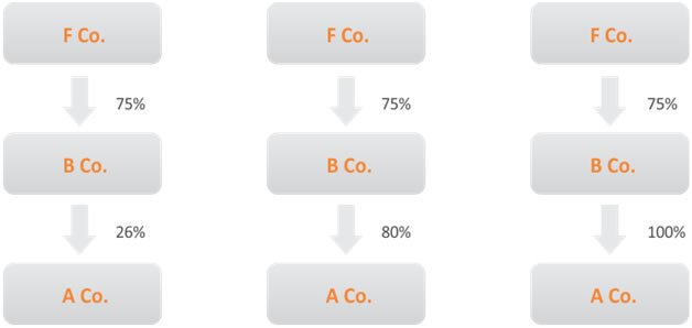Where company A is a 100 percent subsidiary of company B, indirect foreign investment in company A would be taken as 75 percent.